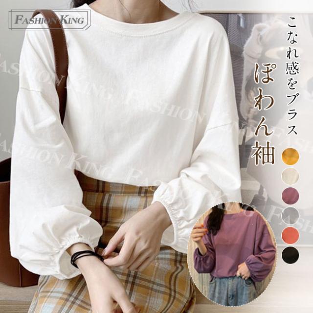 長袖Tシャツ 春服 レディース 秋冬 春新作 トップス ドルマンスリーブ ぽわん袖 カットソー 長袖tシャツ ゆったり 無地 バルーンスリーブ 春秋 カジュアル ホワイトデー 卒業式