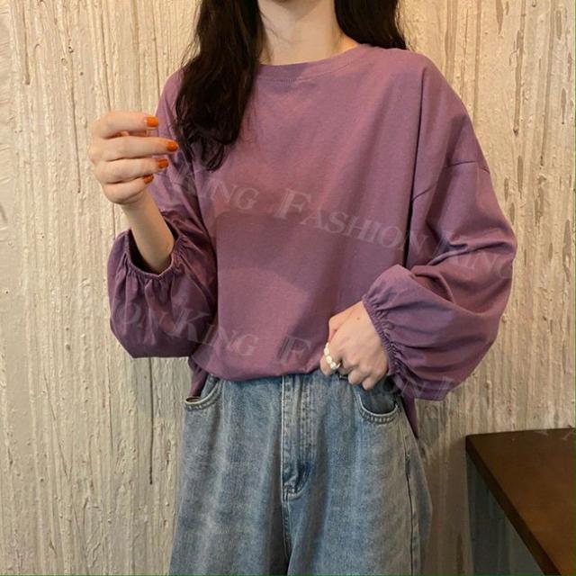 新作 長袖Tシャツ 春服 レディース トップス ドルマンスリーブ ぽわん袖 カットソー 長袖tシャツ ゆったり 無地 バルーンスリーブ 春秋 カジュアル