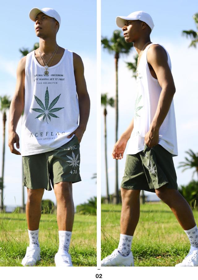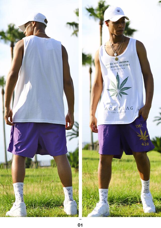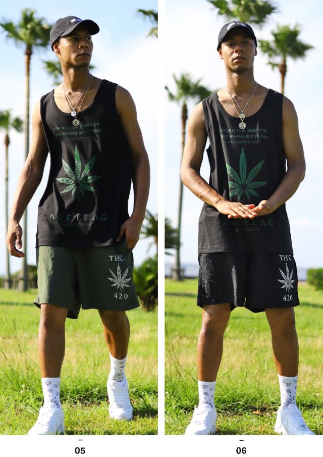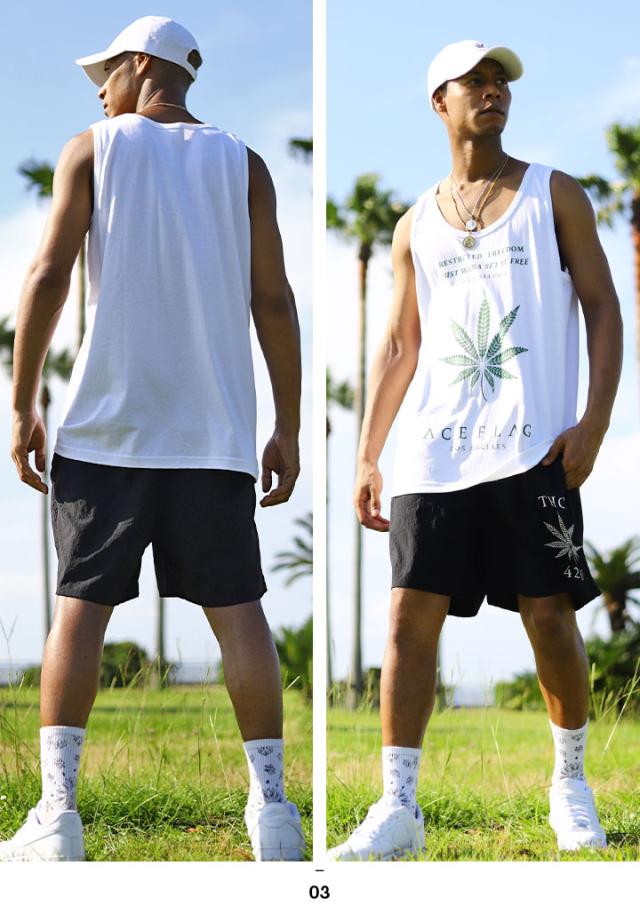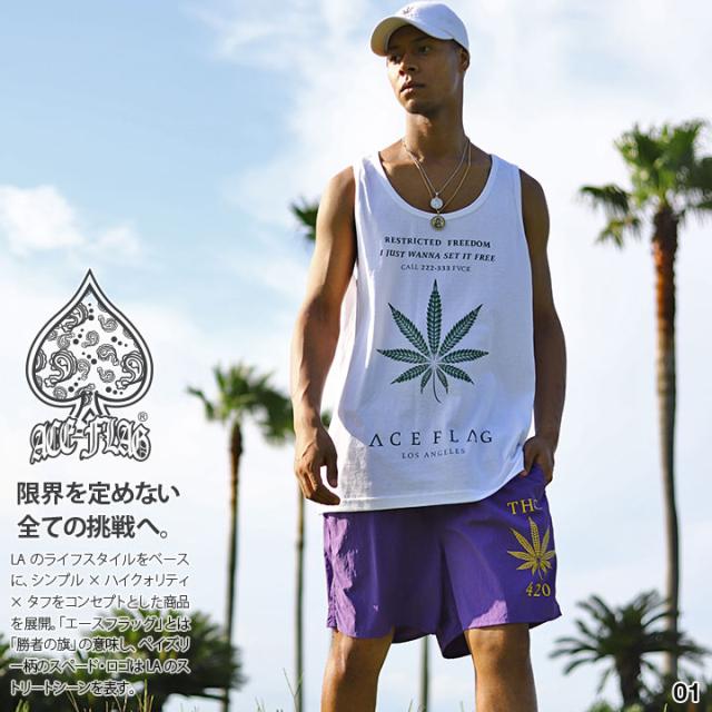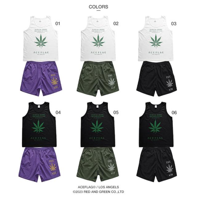 ACE FLAG 上下セット ノースリーブ ハーフパンツ メンズ 全6種 大きいサイズ エースフラッグ セットアップ タンクトップ ナイロン ビッグシルエット 大麻 ヘンプ b系 ストリート系 ハイ AF-SE-TK-009