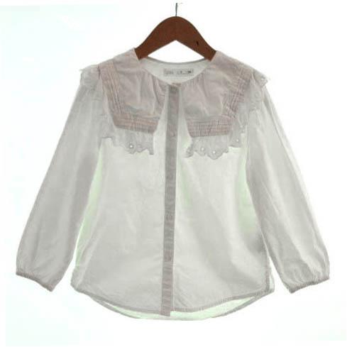 【中古】ザラ ZARA シャツ ブラウス セーラーカラー レース 長袖 コットン ホワイト 白 8 キッズ