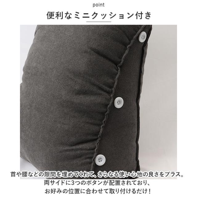 | 商品説明 | ・心地よい姿勢でリラックス♪快適な時間を過ごせる、三角クッションが新登場。 【程よい傾斜がポイント】 ・一般的な四角形や丸型と異なり、程よい角度のついた三角形タイプ。体を傾けた時に、ちょうどよくフィットする形状。 【便利なミニクッション付き】 ・首や腰などの隙間を埋めてくれて、さらなる使い心地の良さをプラス。両サイドに3つのボタンが配置されており、お好みの位置に合わせて取り付けるだけ! 【使い方いろいろ】 ・背もたれ用のクッション、座布団、膝上のクッションテーブル代わりに。お昼寝用の枕代わりや、うつぶせ寝のクッションとしても活躍。ミニクションは抱き枕に。 【ふんわり柔らかな触り心地】 ・しっかりとした中綿入りで、弾力のある仕上がり。頭や身体が痛くなりにくいのがポイント。 【オールシーズンOK】 ・カバーはさらっとしたファブリック生地。汗ばむ季節もベタつきにくく、季節によってカバー替えする手間も不要◎ 【便利なサイドポケット】 ・三角クッションの片サイドに、スマホやリモコンなどが入るミニポケット付き。どこ行った?となりがちなアイテムをしまっておけて安心。 【お手入れラクラク】 ・どちらもカバーを取り外して、洗濯機洗いOK。いつも清潔に保てるのが嬉しい! |
