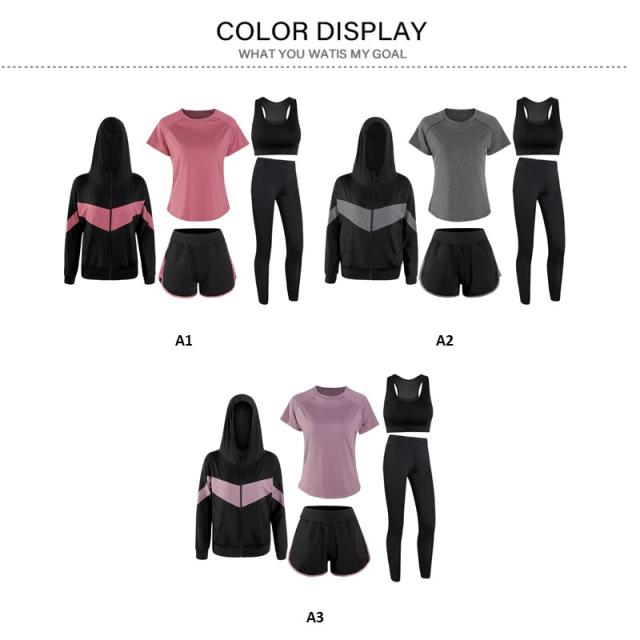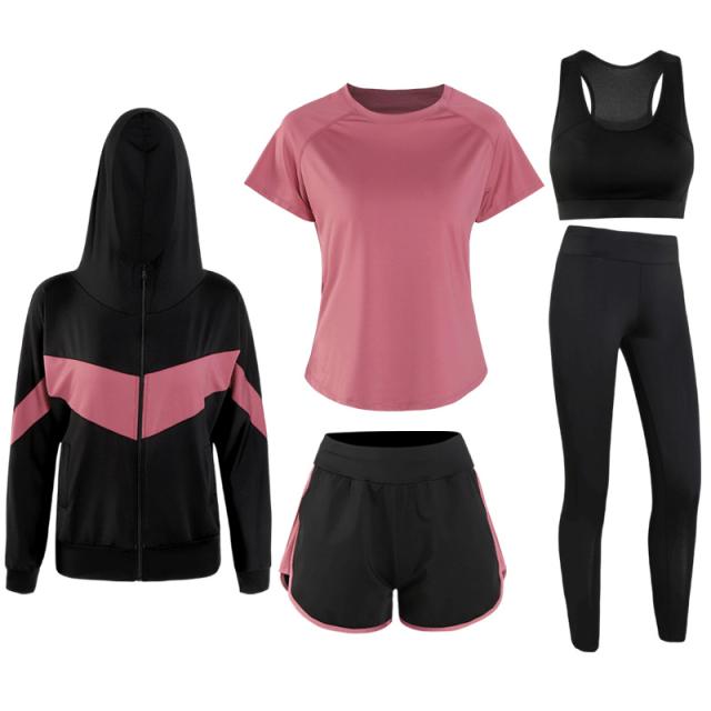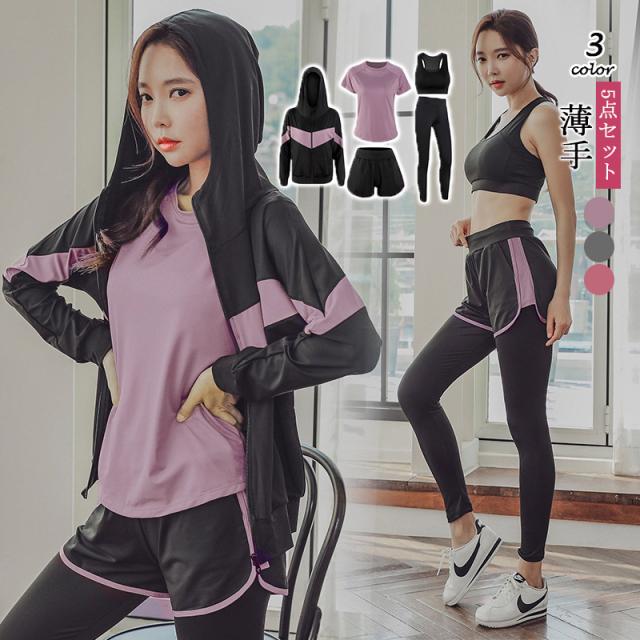 スポーツウェア 5点セット ヨガ トレーニングウェア レディース オールシーズン UV対策 吸汗速乾 送料無料 ストレッチ お散歩 ウォーキングウェア