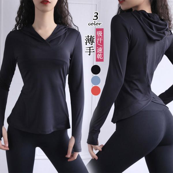 トレーニングウェア レディース Tシャツ ランニング スポーツウェア トップス フィットネス ヨガウェア ダイエット 吸汗 速乾 フード付き パーカー