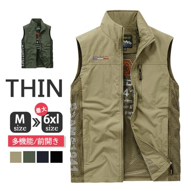 メッシュベスト メンズ 釣り 野外撮影 スポーツ 作業服 アウトドア 機能性 軽量 ポケット付 作業着 農業 仕事 ウォーキング 登山 カメラマン ミリタリー 撮影用 父の日ギフト 父の日 プレゼント 機能性