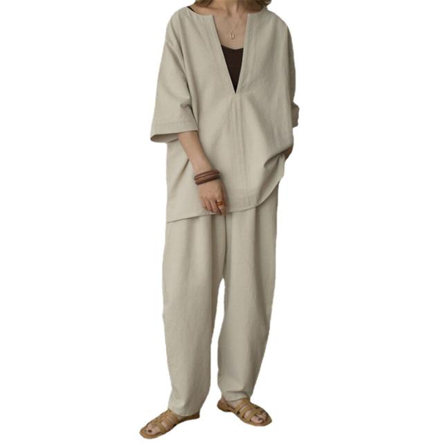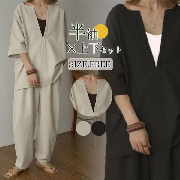 セットアップ レディース 夏 秋 30代 40代 無地 上下セット きれいめ ファッション ゆったり 通勤 部屋着 カジュアル 体型カバー