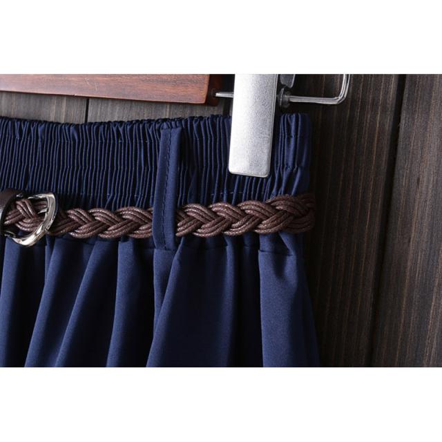 - シワになりやすいです。届いた時からシワになっていましたが、洗濯しても取れませんでした。裏地はありません。ダークグリーンを購入しましたが、ネイビーに近いグリーンです。低身長なので丈はちょうど良くて、ウエストも良かったです。