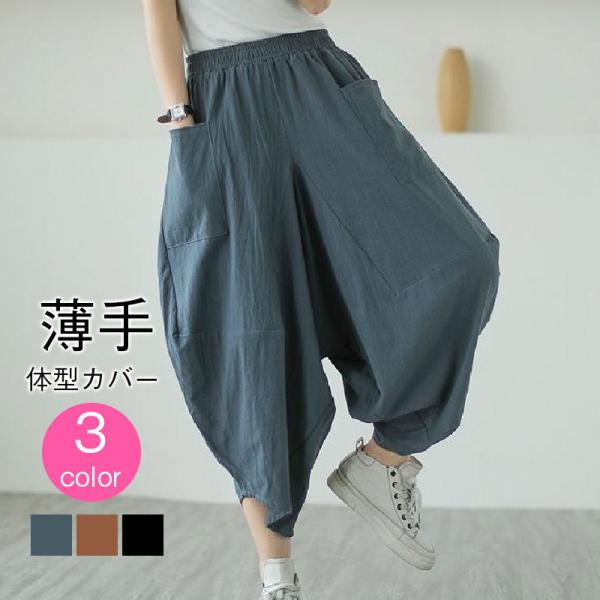 サルエルパンツ レディース ジョッパーズパンツ 7分丈パンツ 体型カバー ボトムス ゆったり シンプル 春物 ワイドパンツ ハイウエスト ポケット付き