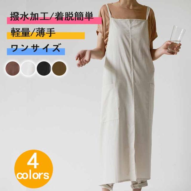 エプロン おしゃれ 撥水加工 ロング コットン シンプル ナチュラル 軽量 薄手 保育士 ガーデニング カフェエプロン 前掛け 着脱簡単 前掛け