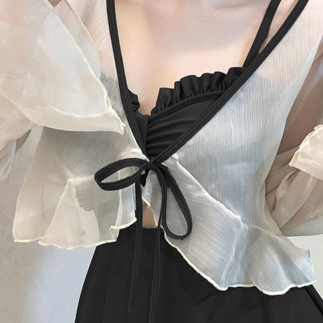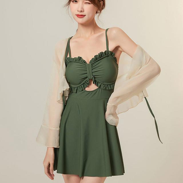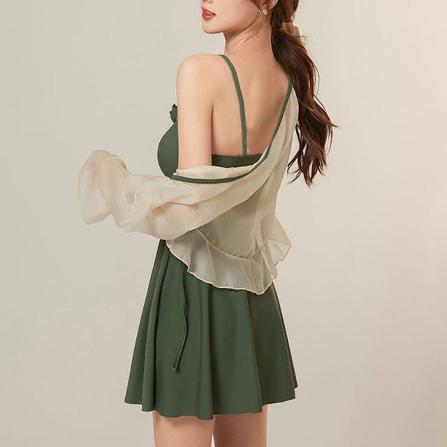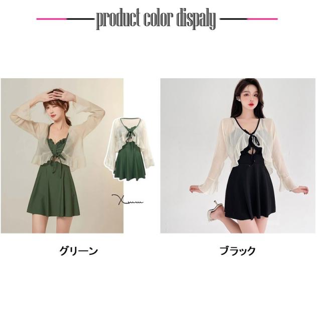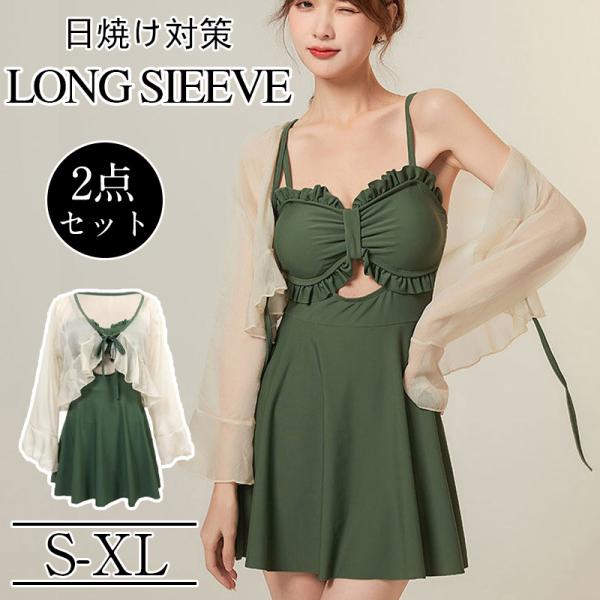 水着 レディース 体型カバー 2点セット ブラウス ラッシュガード 羽織付き ワンピース UVカット ママ水着 海水浴 日焼け対策 韓国風 可愛い