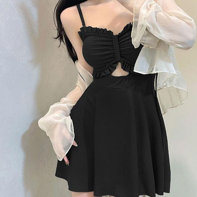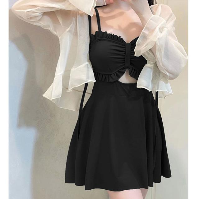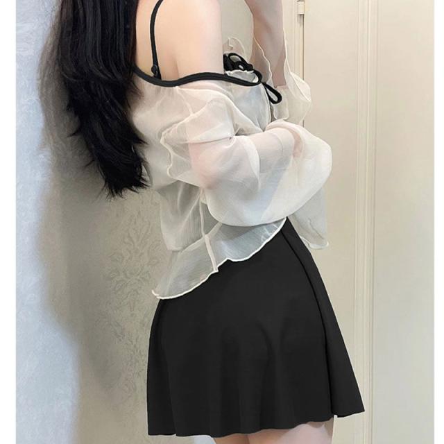 露出が苦手なあなたでも大丈夫なブラウス付水着2点セットです。