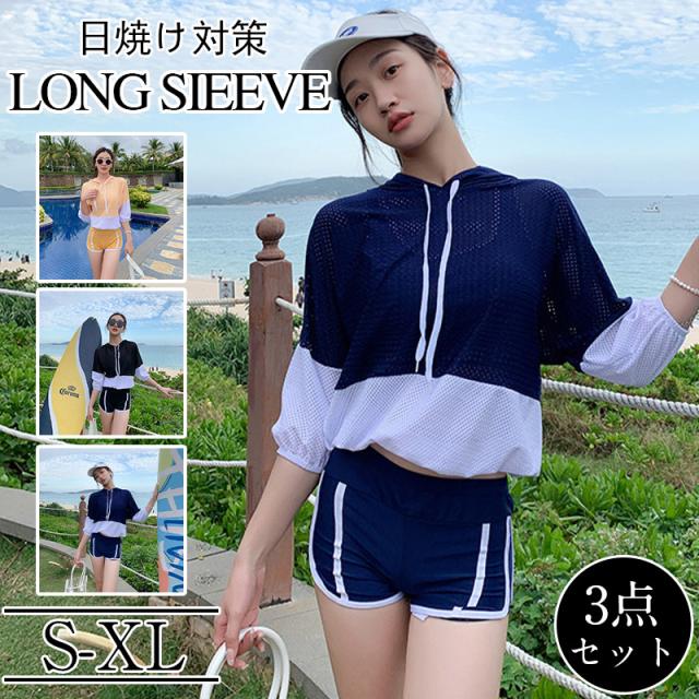 水着 レディース 体型カバー 3点セット フィットネス水着 スポーティー 中学生 高校生 ママ水着 大人 体型カバー水着 女子 可愛い お洒落