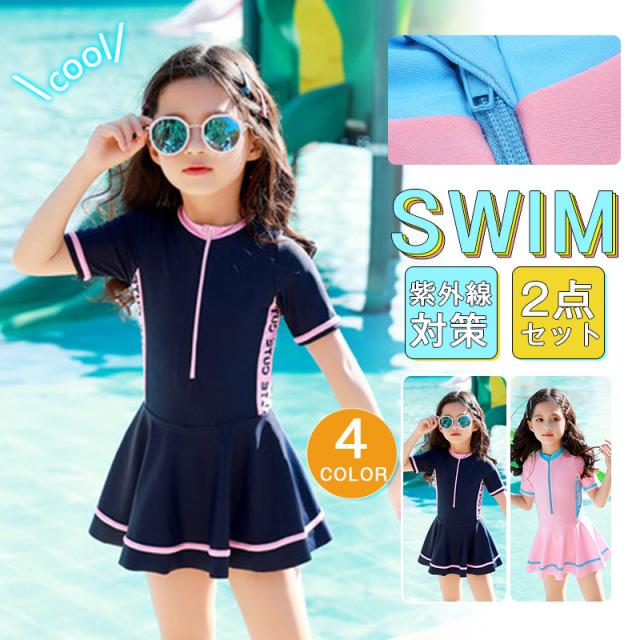 キッズ スクール水着 女の子 ワンピース水着 子供用 オールインワン 水着セット 小学生 水着 半袖 ジュニア 女児 女子 子ども 練習用