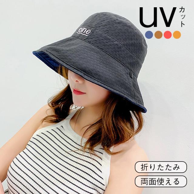 バケットハット リバーシブル バイカラー 刺繍ロゴ レディース 日よけ帽子 uvカット つば広 折りたたみ 紐付き 自転車 風で飛ばない かわいい 夏