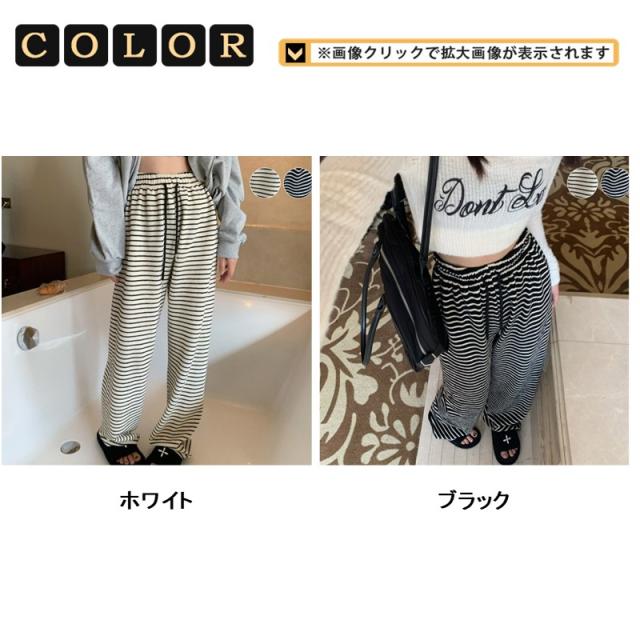 ワイドパンツ プリントイージーパンツ ボーダー柄 リラックスパンツ レディース カジュアル 接触冷感 ひんやり 涼しい 薄手 夏用 ルームウェア
