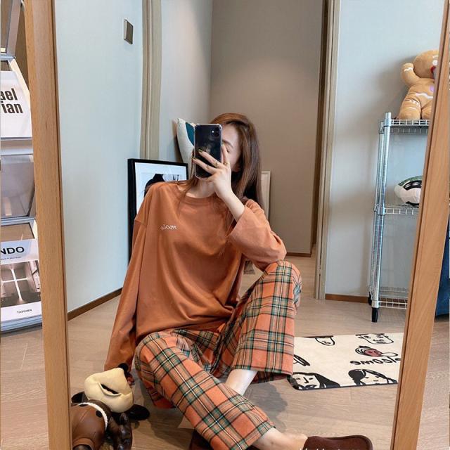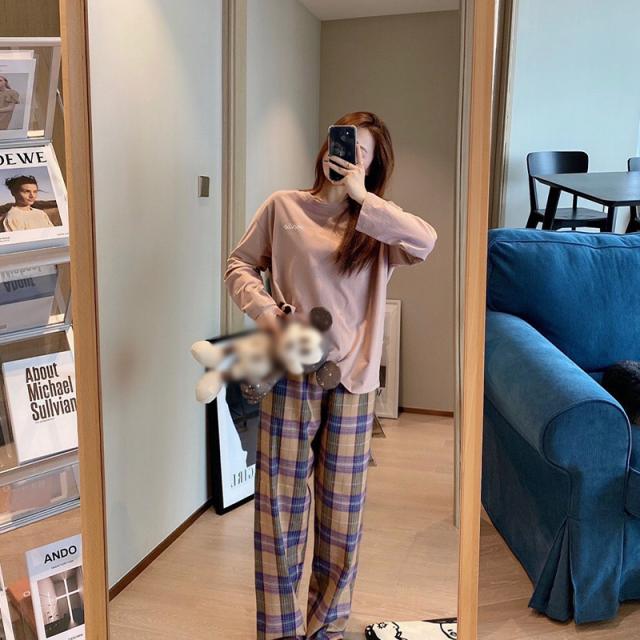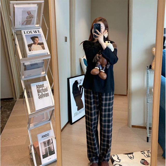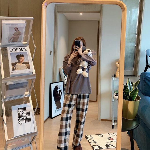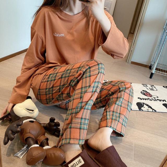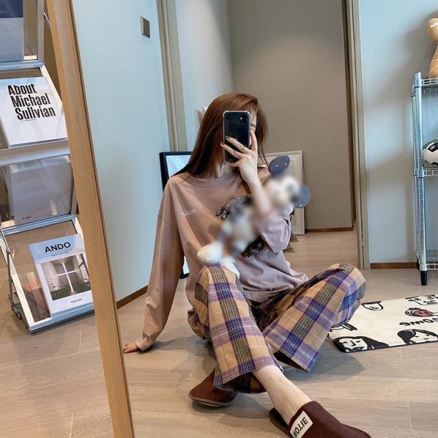 パジャマ ルームウェア レディース 長袖 チェック柄 長ズボン 上下セット 寝間着 部屋着 秋 春 2点セット 春夏 柔らかい 女性 部屋着 寝間着