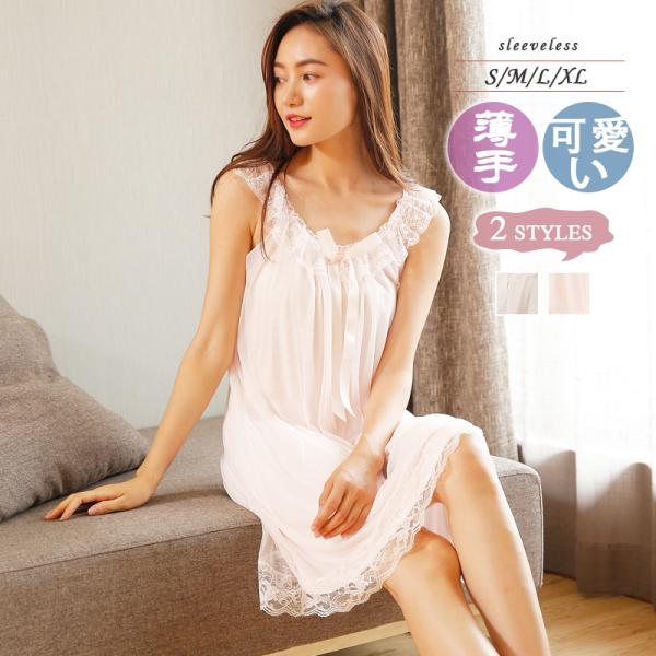 ネグリジェ レディース パジャマ シルク風 パッド付き レース 姫系 ワンピース セクシー 薄手 ルームウェア 部屋着 寝巻き おしゃれ