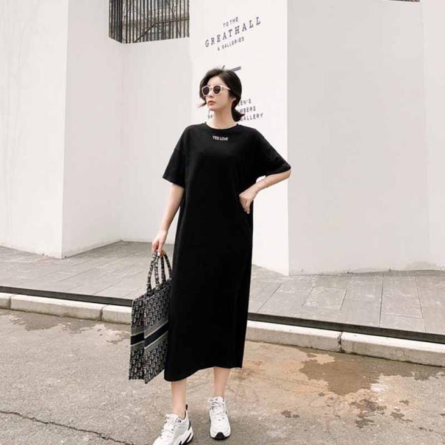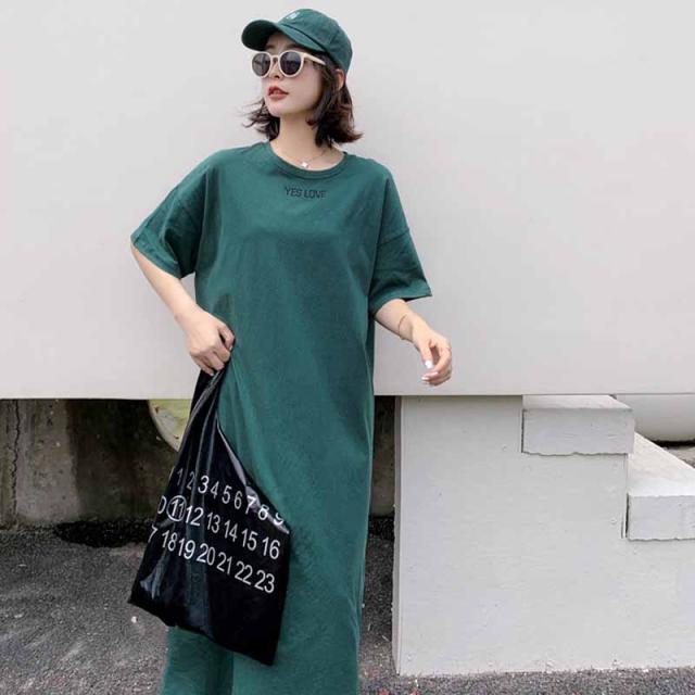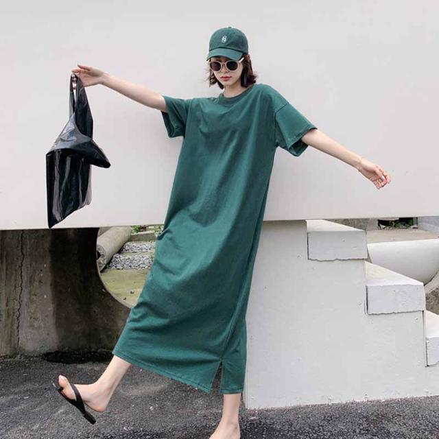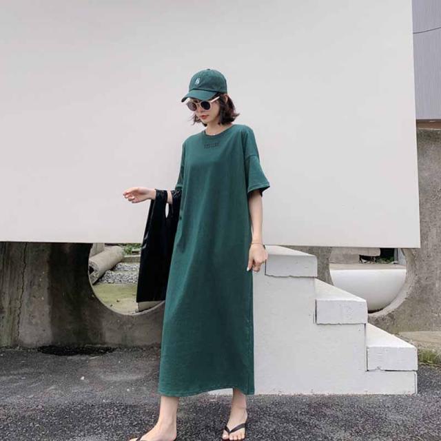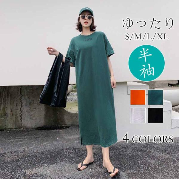 ワンピース 半袖 レディース Tシャツワンピース ロングTシャツ 半袖Tシャツ 半袖ワンピース ストレート ロング丈 シンプル 部屋着 ルームウェア