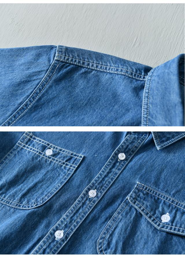 シャツ メンズ デニムシャツ ワークシャツ カジュアルシャツ 半袖 ポケット付き マーク ユーズド加工 柔らかい 綿100% 夏服 トップス