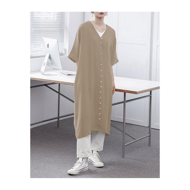 ワンピース レディース ロング 半袖 ロングワンピース 夏 シャツワンピース 五分袖 レディース リゾートワンピース 羽織り ポケット