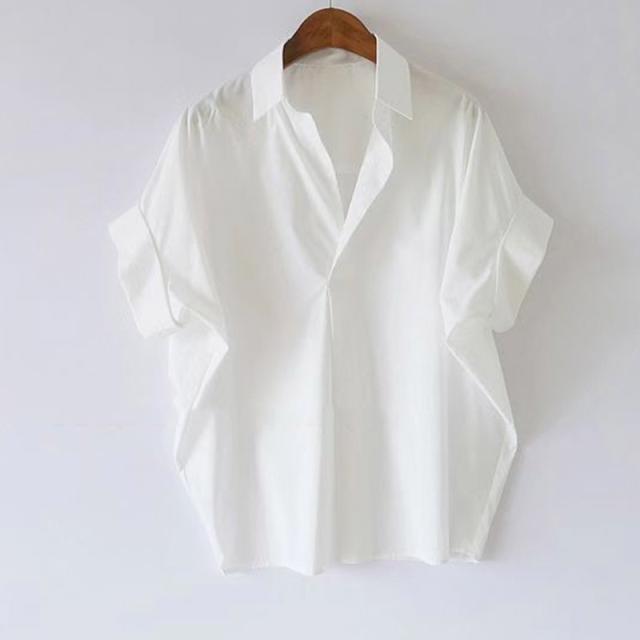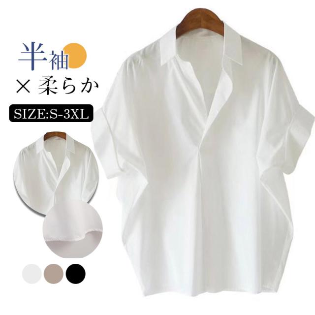 tシャツ レディース 半袖 シャツブラウス 夏 トップス カジュアル 無地 ナチュラル 春 羽織り シャツ 大きいサイズ 体型カバー