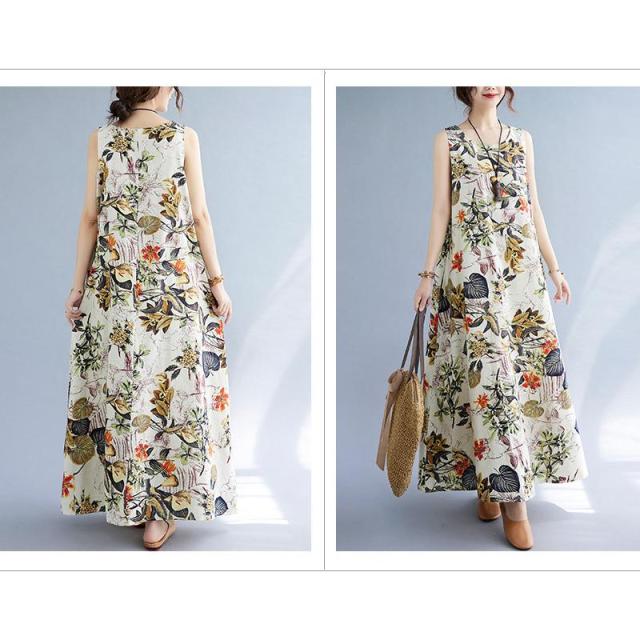夏ワンピース ロングワンピース レディース 花柄 綿麻 マキシ丈 キャミ ロング リネン aライン 大きいサイズ 体型カバー きれいめ