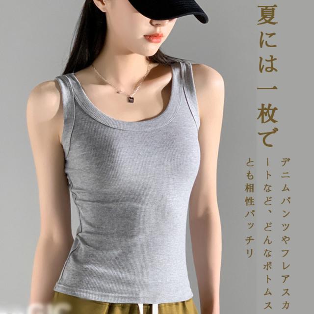 2点セット リブタンクトップ キャミソール レディース インナー トップス ノースリーブ Uネック 通気性 吸湿 一部即納