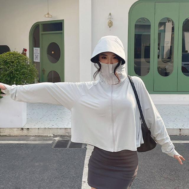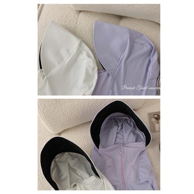 uv パーカー 指穴 uvカット ひんやり 接触冷感 ラッシュガード ショート丈 フード付き カーディガン 日焼け止め 軽量 長袖 薄手 吸水速乾