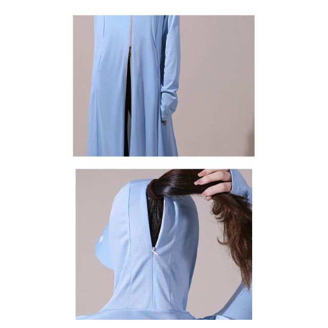 - 通気の良いメッシュ素材なのでロングで全体的に紫外線をガードできるのが嬉しいです。 適度に伸縮もする生地なので自転車に乗っていてもフードがはずれないのも良いです。 サンバイザーやポケットもついているので機能性もあり満足しています。 ありがとうございます。