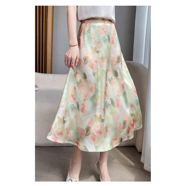 マキシ丈スカート ロング丈 春 夏 巻きスカート フレア レディース ラップスカート トレンド サテン Aライン 光沢感 ミモレ丈 カジュアル コーデ