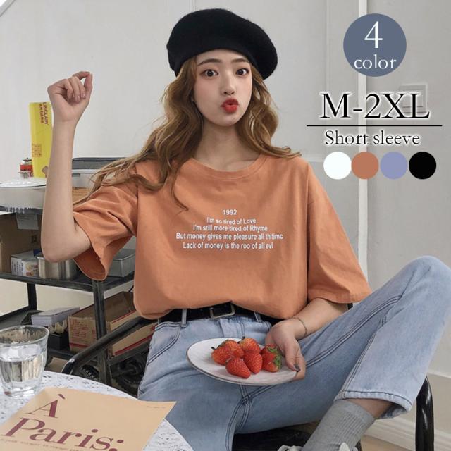 Tシャツ レディース 秋 冬 秋冬 白 黒 チュニック ロゴ 半袖 トップス カットソー ロゴT ホワイト ブラック オレンジ ブルー 大人