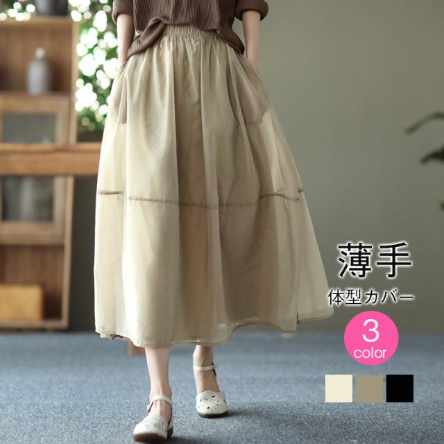 スカート チュールスカート スカート マキシ ロングスカート フレアスカート ウエストゴム マキシスカート ミモレ丈 スカート ゆったり お花見