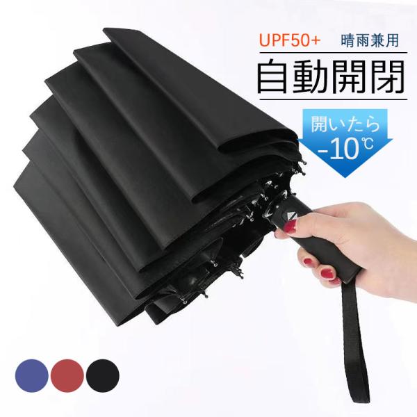 日傘 折りたたみ傘 晴雨兼用 自動開閉 大きい 丈夫 遮光 遮熱 UVカット LED付き 畳み UPF50+ 紫外線対策 ブラックコーティング 父の日