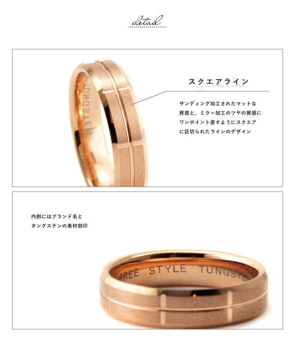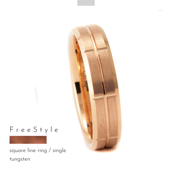 リング 指輪 タングステン 金属アレルギー アレルギーフリー クロスライン 平打 刻印 名入れ 指輪 ピンクゴールド Free style ダイヤの次に硬い金属 丈夫 レアメタル 結婚指輪