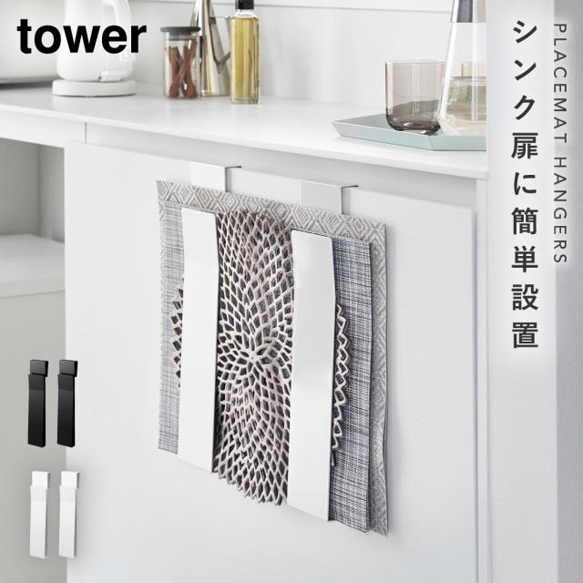 tower ランチョンマット 収納 シンク扉 トレー トレイ キッチン 山崎実業 タワー 扉に掛けるランチョンマット収納 タワー