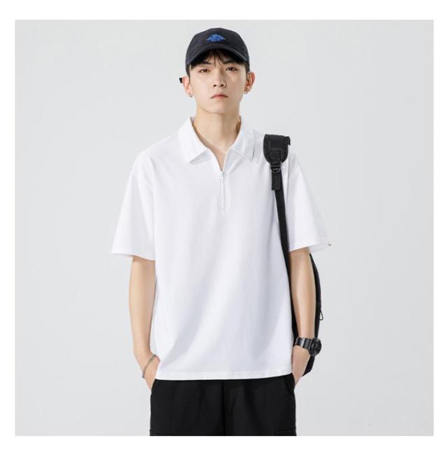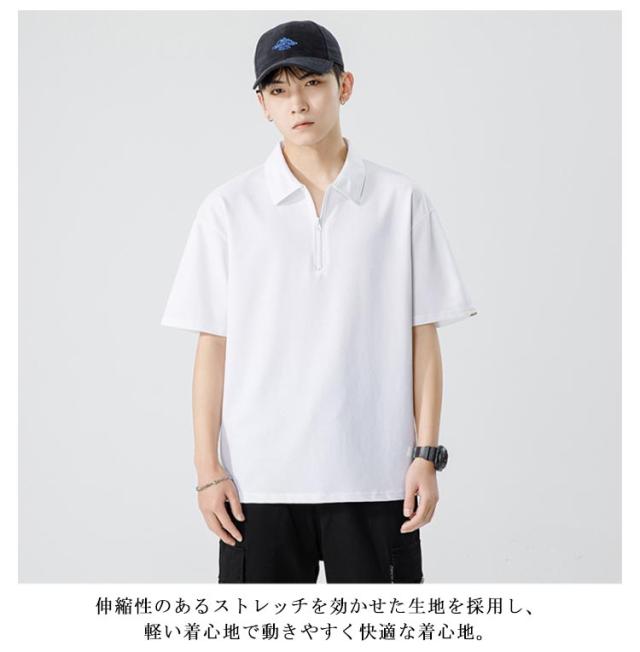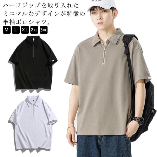 ポロシャツ 半袖 tシャツ メンズ ハーフジップ ポロ 鹿の子 ドライ 接触冷感 涼しい 吸水速乾 ストレッチ 薄手 プルオーバー ゆったり ルーズ 無地 ゴルフ カジュアル オフィス 通勤 大きいサイズ 黒 白 ブラウン 韓国風 T/C 【送料無料】