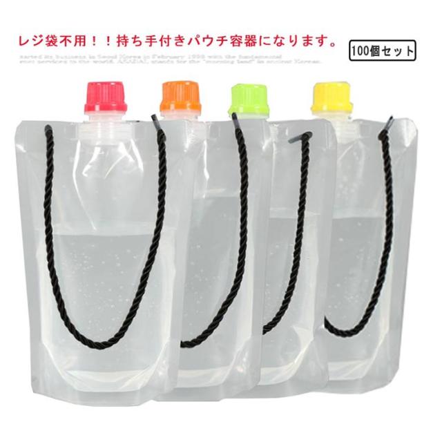 100枚セット!ひも付きスパウトパウチ 保存容器 500ml スタンド袋 パウチ 手提げ スパウトパウチ ふた付 保存 ゼリー ジュース ドリンク ジャム 容器 食品用スパウトパウチ キャップ付き袋 スパウト付きスタンドパウチ 調味料容器 おしゃれ