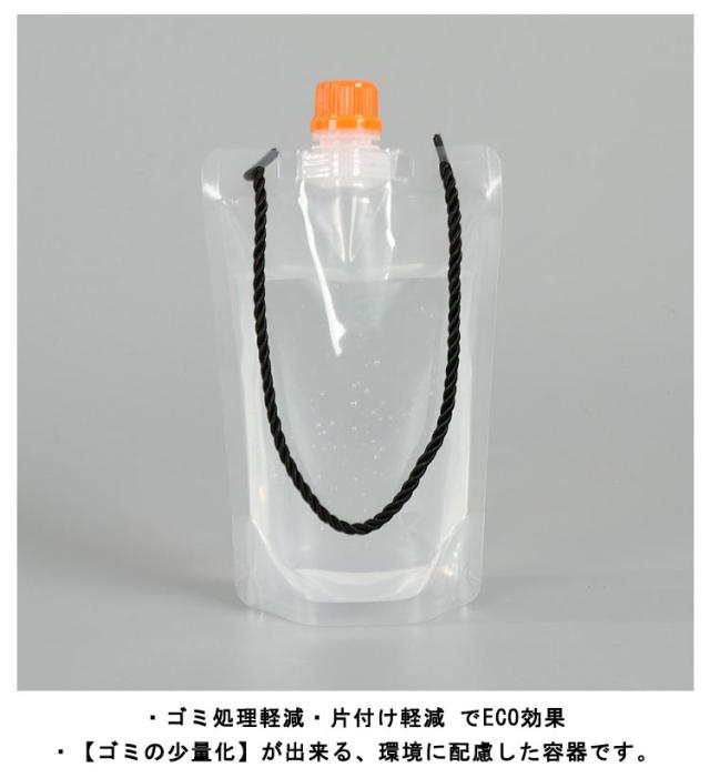 | レジ袋不用!!持ち手付きパウチ容器になります。 今後、お客様には多く求められる商品です。オシャレで話題のSNSで映えも間違いなし! ・スタンドパウチで自立します。 ・置き場所 小スペース収納が出来ます。 ・軽量かつ小さく詰めやすいので持ち運びが楽。 ・ゴミ処理軽減・片付け軽減 でECO効果 ・【ゴミの少量化】が出来る、環境に配慮した容器です。 | |
