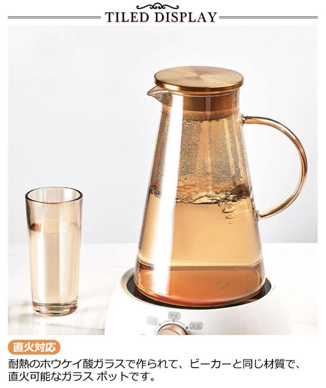 ガラスピッチャー 耐熱 2000ml 直火 直火電気ケトル対応 ガラスポット ガラスケトル 2リットル 直火電気ケトル対応 ティーポット 耐熱ガラス 大容量 ホウケイ酸ガラス 送料無料 洗いやすい 冷水筒 冷水ポット 麦茶入れ 水だし 紅茶ポット