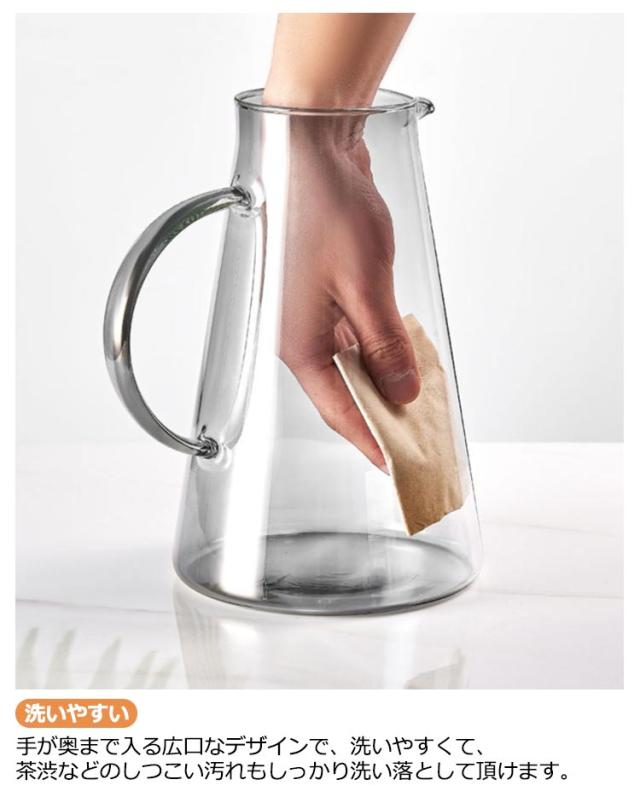 | 【2000ml】 【直火対応】耐熱のホウケイ酸ガラスで作られて、ビーカーと同じ材質で、直火可能なガラス ポットです。 【簡単に洗える】ボトルの口径が大きく、手が直接差し込めて清潔できます。 【-20℃〜150℃対応】麦茶、紅茶、ジュース、コーヒー、ミルクなどの飲み物を淹れたい時にご気楽にお使えいただけます。-20℃〜150℃、耐熱ガラスので、温かい飲み物にも冷たい飲み物にも使える耐熱ガラス製のピッチャーです。 【洗いやすい】手が奥まで入る広口なデザインで、洗いやすくて、茶渋などのしつこい汚れもしっかり洗い落として頂けます。 | |
