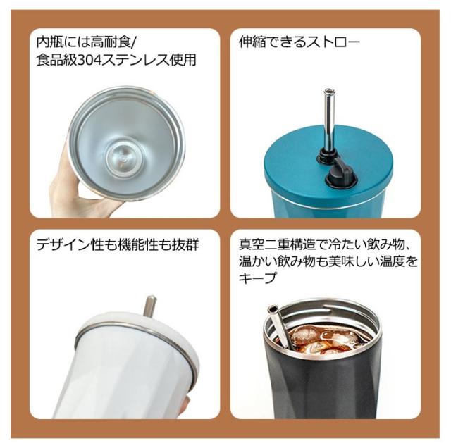 | 【保温保冷 / 6-12時間】 【真空二重構造 / SUS304を使用】 ストロー付きのステンレスタンブラー 目線を下げずに飲むことが出来るのでオフィスやデスクワークに最適です。 真空二重構造で冷たい飲み物も温かい飲み物も美味しい温度をキープしてくれます。 本体内側にはSUS304を使用し、通常のステンレスよりも腐食に強いです。 経口補水液や炭酸飲料、スポーツドリンク、乳製品などを入れても安心です。 パーツは分解出来るのでお手入れも簡単です。 | |