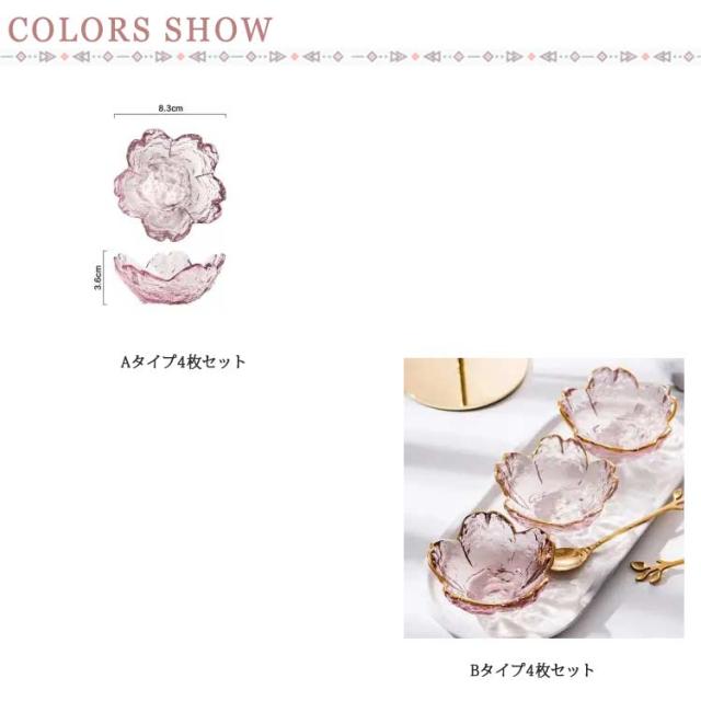 小皿 セット 桜 クリア おしゃれ 小鉢 ガラス 4枚セット ガラスボウル ガラス食器 サクラ 食器 業務用 かわいい 和食器 洋食器 飲食店 お皿 小鉢 デザート クリア キレイ さくら 花柄 四季 ピンク 花見 春 インスタ映え 送料無料