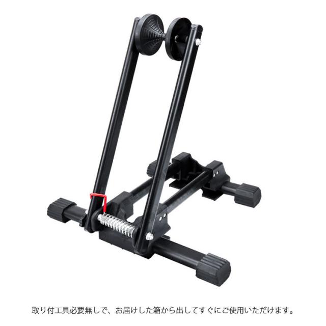 | 自転車を差し込むだけなので、簡単操作で素早く自転車を保管できます。 スプリング式アームで前輪のタイヤーをしっかり固定し、バイクのリムやスポークに傷を付ける心配はありません。 安定していて、倒れるない。抜群の安定感。ディスプレイスタンドとしても最適。 取り付工具必要無しで、お届けした箱から出してすぐにご使用いただけます。 ロードバイク、クロスバイクなどの様々な自転車に対応。 使わないときは折りたたみ式ですので、コンパクトに収納、スマートな設計で置き場も困らない! | |