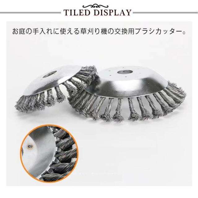 | 【草刈り機の交換用ブラシカッター】 【3個セット】 【6inch 8inch】 お庭の手入れに使える草刈り機の交換用ブラシカッター。 頑丈なスチールワイヤー製、耐久性があります。 サビ取りやバリ取りなどに使用できる高い汎用性 幅広い互換性、他のほとんどすべての刈払機に適しています。 庭、歩道の草刈だけではなく、レンガの縫い目などに苔取り、バリ取り、粉塵除去、酸化物除去、クリーニングなどにも適しています。 石やハードブロックを打つとき、それは正常に動作することができます。 | |