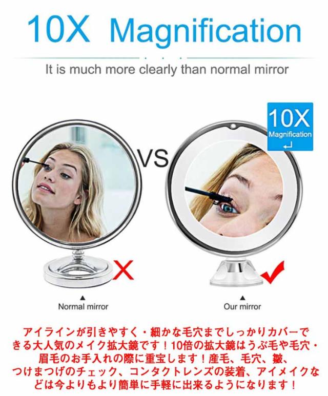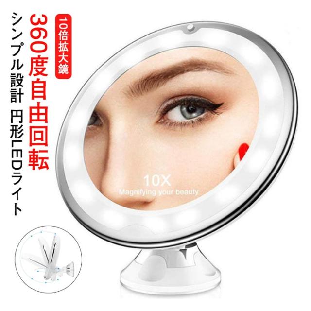 10倍拡大鏡 LED化粧鏡 浴室鏡 卓上鏡 女優ミラー 壁掛けメイクミラー 吸盤ロック付きLEDミラー 360度回転ミラー スタンドミラー ミラー 誕生日 プレゼント 女性 メイク 化粧 スキンケア 鏡 10倍拡大鏡 ギフト