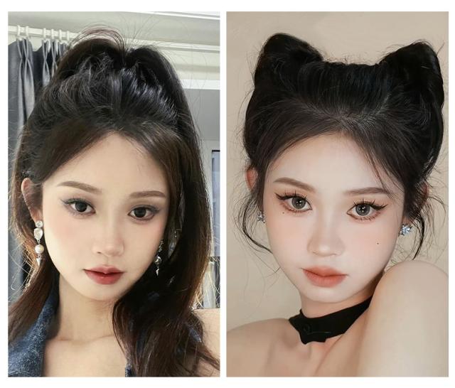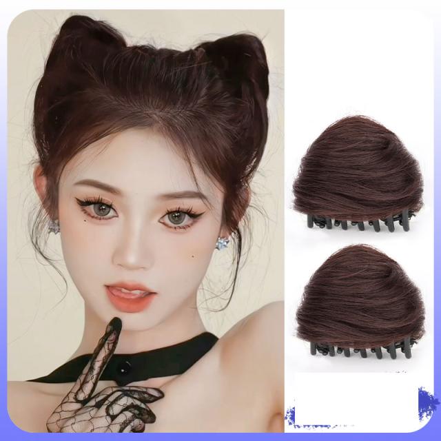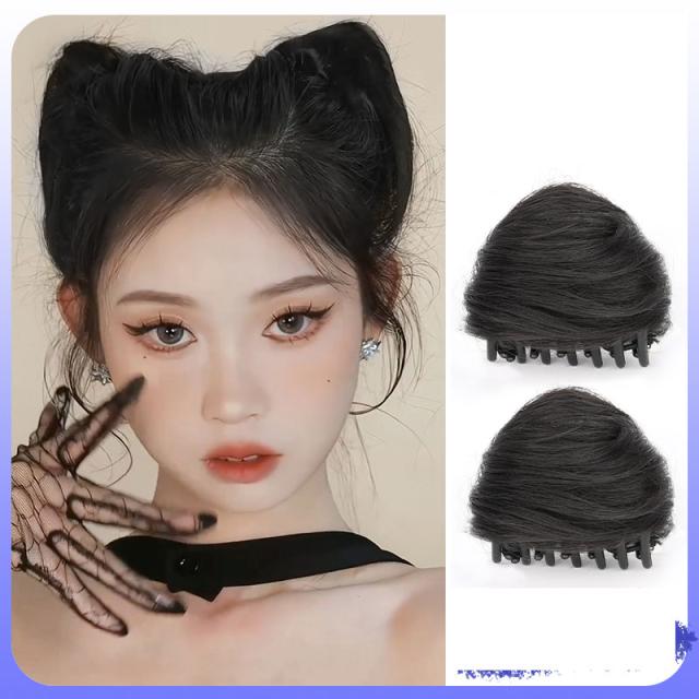 お団子 ウィッグ クリップ 猫耳 2個セット 部分ウィッグ 自然 つけ毛 おしゃれ かわいい