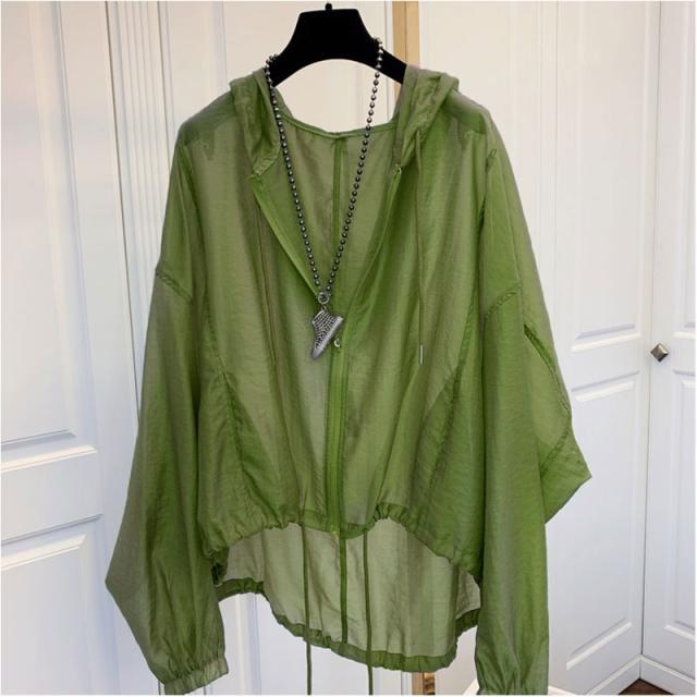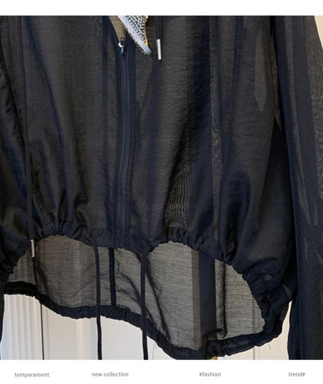 シアー パーカー 通勤 ジップアップ UVカット 春夏 軽い ライトアウター 冷房対策 サマーパーカー 透け感 レディース シースルー 薄手 ゆったり