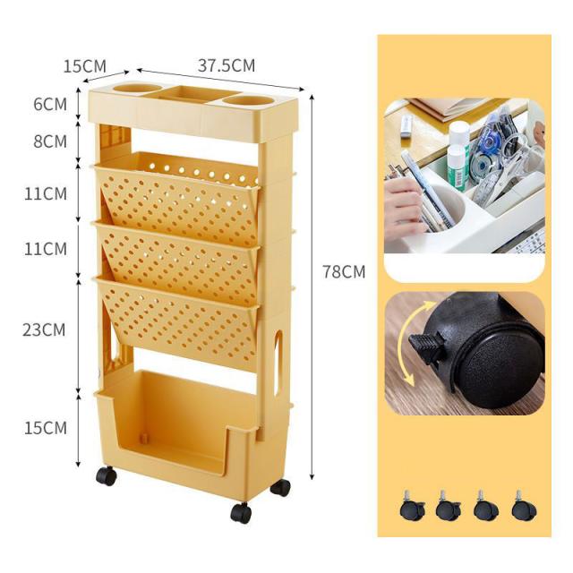 ブックスタンド キャスター付き 本立て キッチンワゴン ワゴン 本棚 書類収納 デスクサイド収納 5段 スリム 絵本棚 卓上収納 デスク整理 学校机用品 大容量 リビング収納 組み立て簡単
