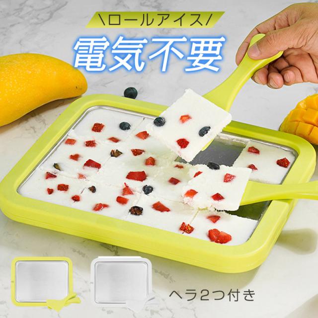アイスクリームメーカー 電気不要 保冷 304ステンレス鋼 ヘラ2つ付き 手作り シャーベット ジェラート プレートタイプ 冷凍フ