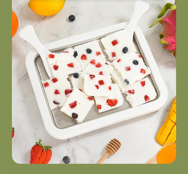 このプレートに盛れば牛乳やヨーグルト、ジュースなどがアイスケーキ、シャーベットになる!自宅で簡単に美味しいアイスケーキが作れる♪