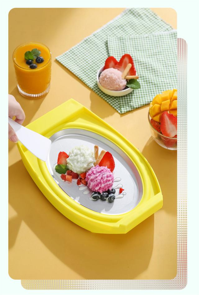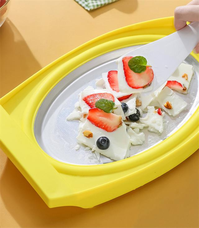 アイスクリームメーカー 電気不要 保冷 ヘラ付き 手作り シャーベット 保冷皿 DIY ジェラート プレートタイプ 冷凍フルーツ